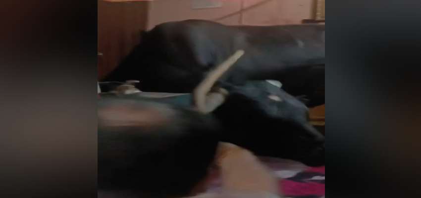Faridabad News: हरियाणा के फरीदाबाद में डबुआ के सी ब्लॉक में बुधवार सुबह एक घर में अचानक एक सांड और गाय घुसने से हड़कंप मच गया। गाय तो बरामदे में ही रुक गई, लेकिन सांड सीधे अंदर जाकर बेडरूम में घुस गया और बेड पर चढ़कर उत्पात मचाने लगा। इस दौरान घर के अंदर पूजा कर रही महिला डर के मारे अलमारी में छिप गई और फोन कर घटना की जानकारी दी।