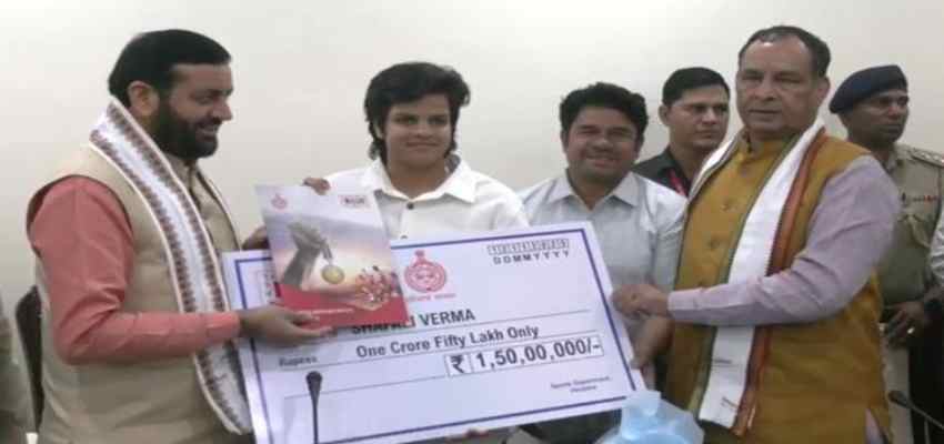हरियाणा सरकार की तरफ से 1.50 करोड़ का कैश अवार्ड और ग्रेड ए ग्रेडेशन सर्टिफिकेट दिया गया। साथ ही हरियाणा महिला आयोग ने शेफाली को अपना ब्रांड एंबेसडर नियुक्त किया। इस पर मुख्यमंत्री नायब सैनी ने कहा कि शेफाली ने ना केवल प्रदेश बल्कि पूरे देश का मान बढ़ाया है। शेफाली पूरे देश के युवाओं के लिए प्रेरणास्रोत है।  शेफाली वर्मा ने परिवार सहित हरियाणा सरकार का धन्यवाद किया। साथ ही उन्होंने कहा कि पूरे देश में खेलों का रोल मॉडल हरियाणा है। खिलाड़ियों को प्रोत्साहित करने के लिए हरियाणा सरकार का धन्यवाद किया।