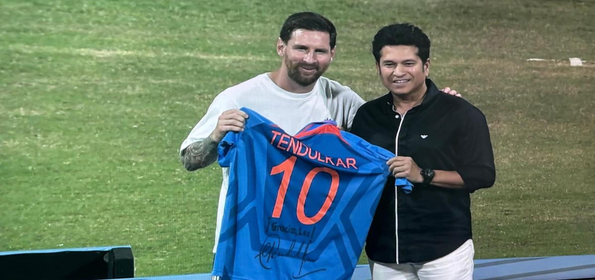 वानखेड़े स्टेडियम में मिले दो धुरंधर, सचिन ने मेसी को गिफ्ट की जर्सी; रिटर्न में मिला फुटबॉल